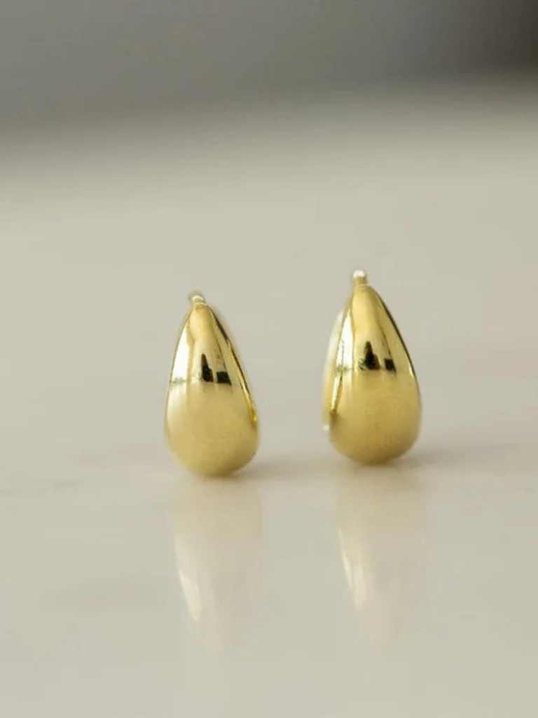 A slightly bolder huggie with a smooth drop shape from Sophie. Timeless & perfect for everyday wear.
